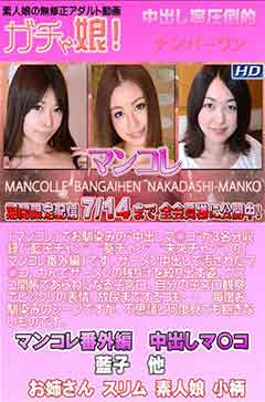 「マンコレ」でお馴染みの”中出しマ〇コ”が3名分収録(”藍子チャン”、”葵チャン”、”未來チャン”)の「マンコレ番外編」です。ザーメン中出しで汚 されたマ〇コ、力んでザーメンの残り汁を絞り出す姿、クスコ開帳であらわになる子宮口、自分の子宮口観察でビックリの表情、放尿までするコも・・・毎度 お馴染みのシーンですが、不思議と何度見ても飽きないものです。 無修正 メーカー 和物 素人 女優