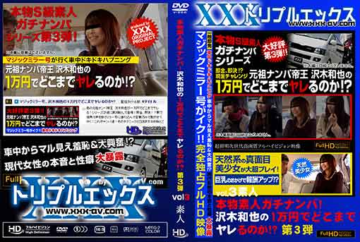あの元祖ナンパ帝王 沢木和也が一万円でどこまでヤレる!シリーズが遂に第3弾として登場!即金、即決!?自称マジックミラー号(ワゴン車)wの中で娘達のドキドキハプニングが勃発!撮りたてホヤホヤを完全独占フルHD映像でお届けいたします♪お馴染み、駅で街角で声を掛けミラー号に連れ込んで言葉巧みで脱がせて行く!これぞナンパ道!そのテクニックと口説き文句を特とご覧あれ!さて、次の三人目は・・・大人しい感じのお姉さんを直撃♪インドアで読書が趣味な地味なお姉さん・・・え?!そんなハレンチな衣装に着替えたら凶変!フェラも手コキもかなりの上級者!たまらず大量発射ですwこの素人お姉さんはいったい?!何者なんだ? 無修正 メーカー 和物 素人
