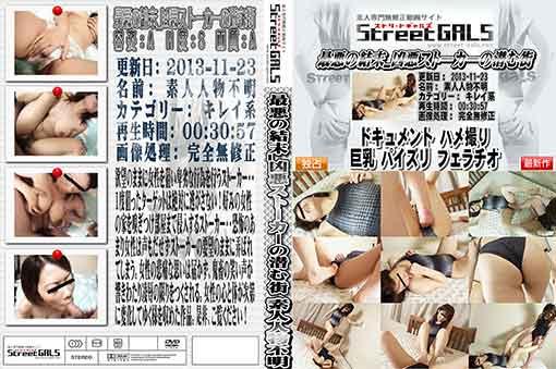 欲望のままに女性を狙い卑劣な行為を行うストーカー・・1度狙ったターゲットは絶対に逃がさない!好みの 女性の家を嗅ぎつけ部屋まで侵入するストーカー・・恐怖のあまり女性は声もだせずストーカーの要望のままに弄ばれてしまう。女性の悲痛な思いは届かず、鬼 畜の笑い声が響きわたり凌辱の限りをつくされる。女性の心と体が次第に変化してゆく様を収めた作品。是非、ご覧ください! 無修正 メーカー 和物 素人 女優