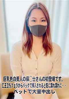 巨乳色白美人の保◯士さんの初登場です。仁王立ちフェラからバックで挿入されると既に濡れ濡れに・・ベットで大量中出し